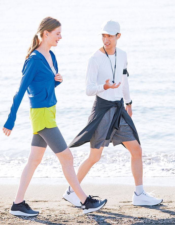 There’s nothing better than an early morning jog, when the air is cool and the sky is full of light, but pretty soon, the sun turns harsh. With the morning air so fresh, it feels too early to put on sunblock. For times like these, it’s good to pack a thin layer you can wear to block the sun. Try taking along one of these hoodies made with AIRism or DRY-EX, breathable and quick-drying yet built to cut out UV radiation. They’re so light you’ll barely notice that they’re tied around your waist, like the man pictured here.