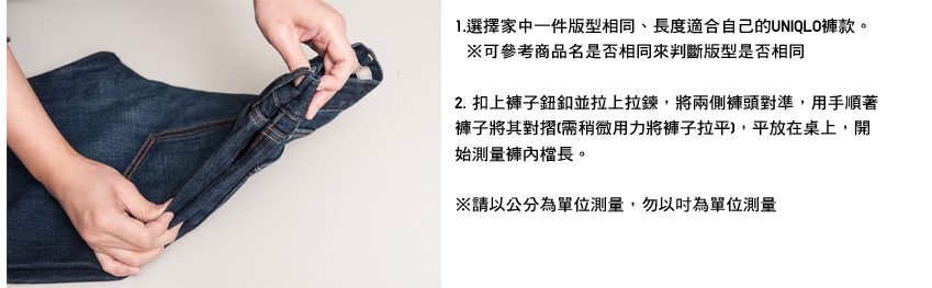 4.將量出來的褲內檔長,於選購褲裝時輸入,UNIQLO網路商店即會依據您指定的褲長進行修改。