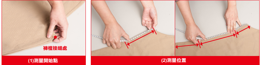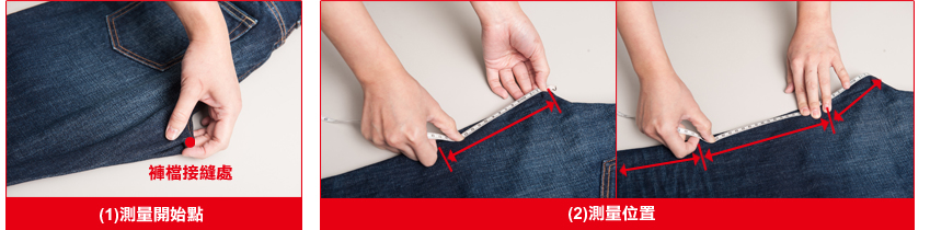 (1)找到褲檔接縫處,由此開始測量。
