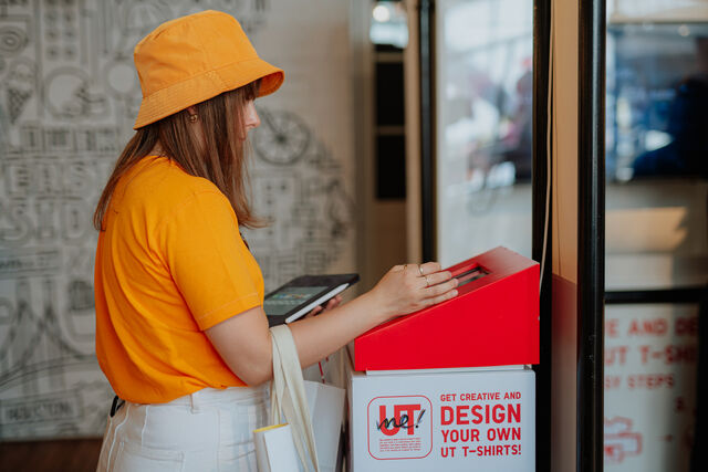 Invent your own designs, or take inspiration from a selection of stickers, icons and graphics to create your very own one-of-a-kind UT T-shirt. Your uploaded photos, unique messages, or custom stickers are printed on a T-shirt or tote bag in minutes for a look that’s truly all yours.