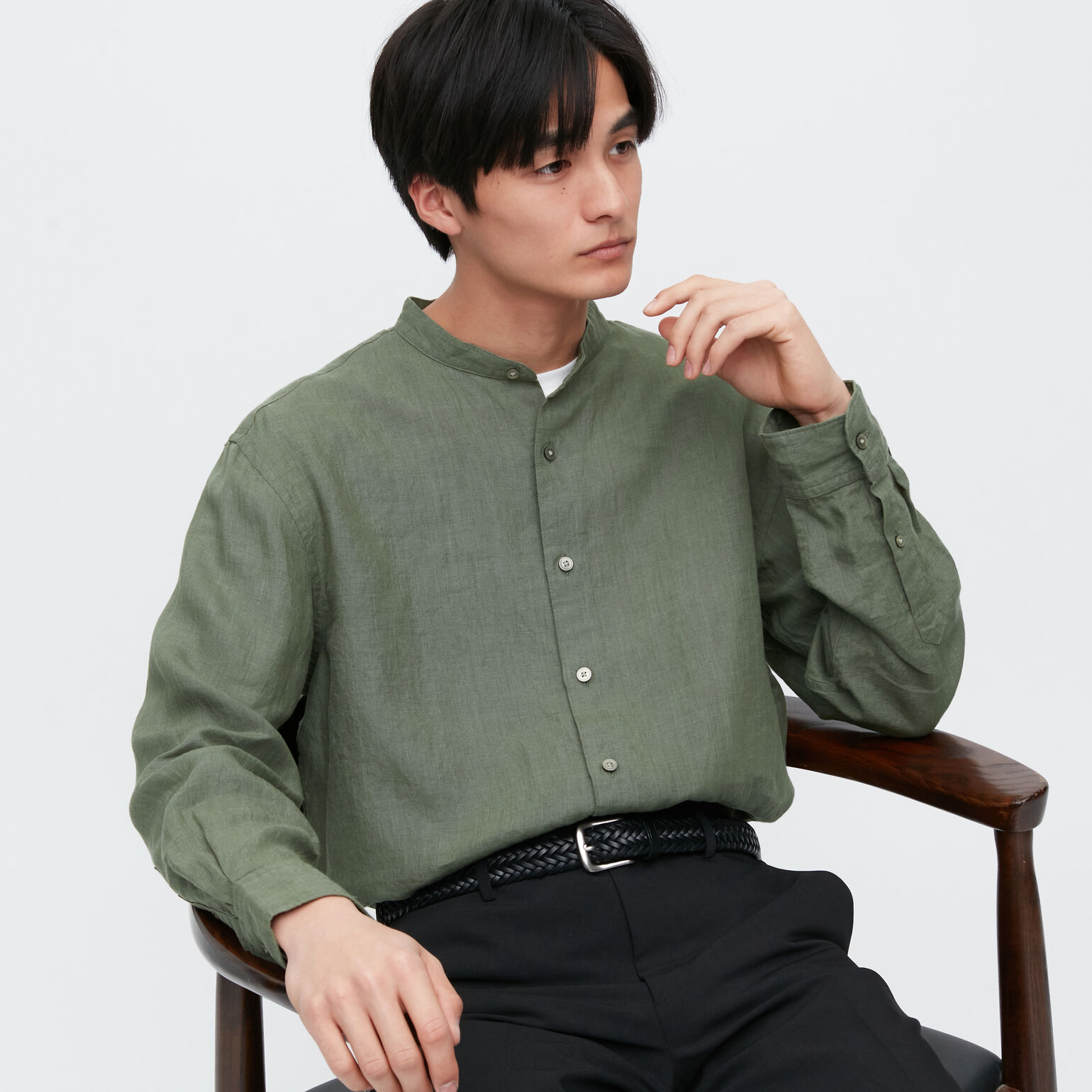 100% Premium Linen Grandad Collar Shirt