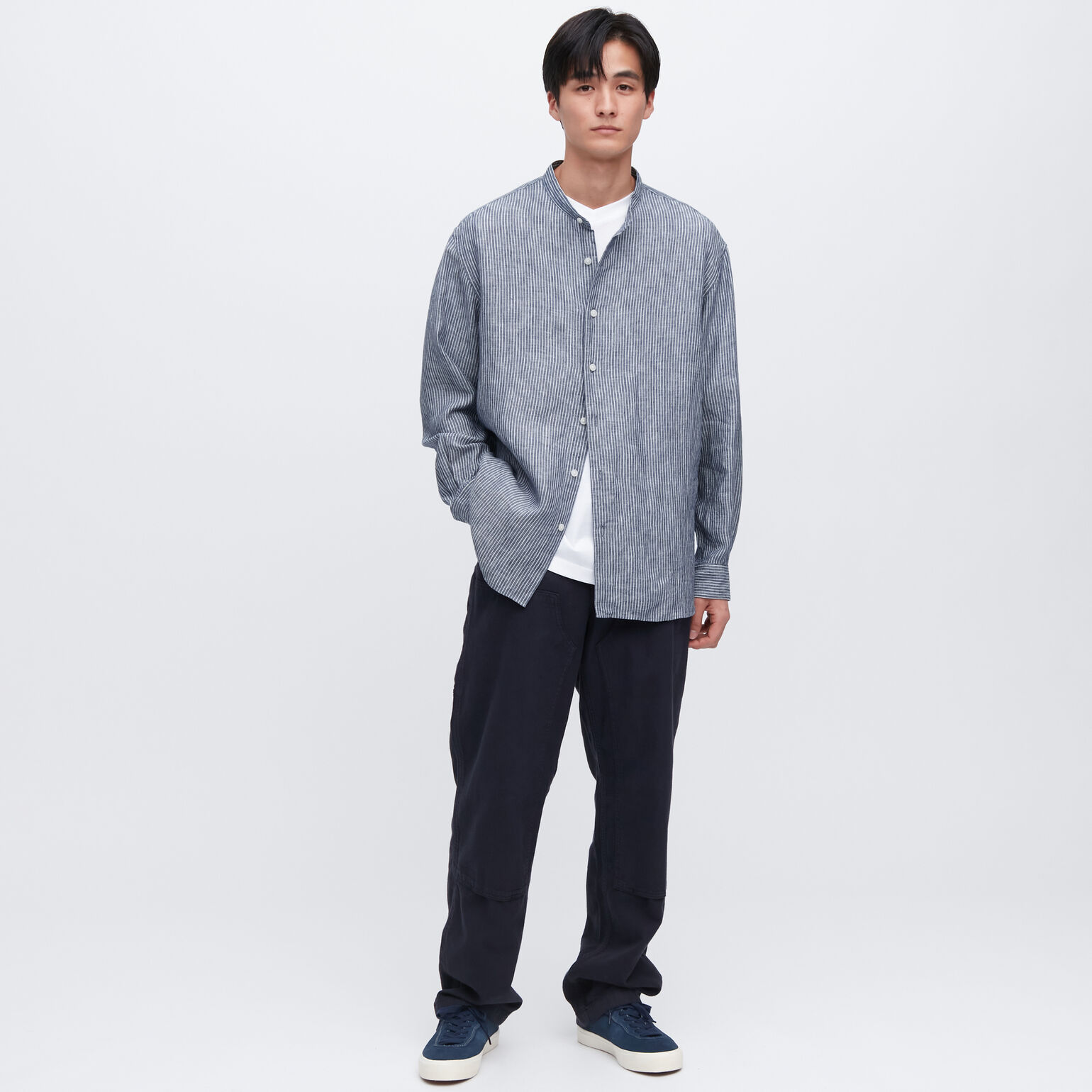 The oversized look is here to stay, so why not embrace the baggy drape and size up your linen shirt? Pairing options are endless: wide leg trousers, knee-length shorts, close-cut shorts, slim fit jeans...