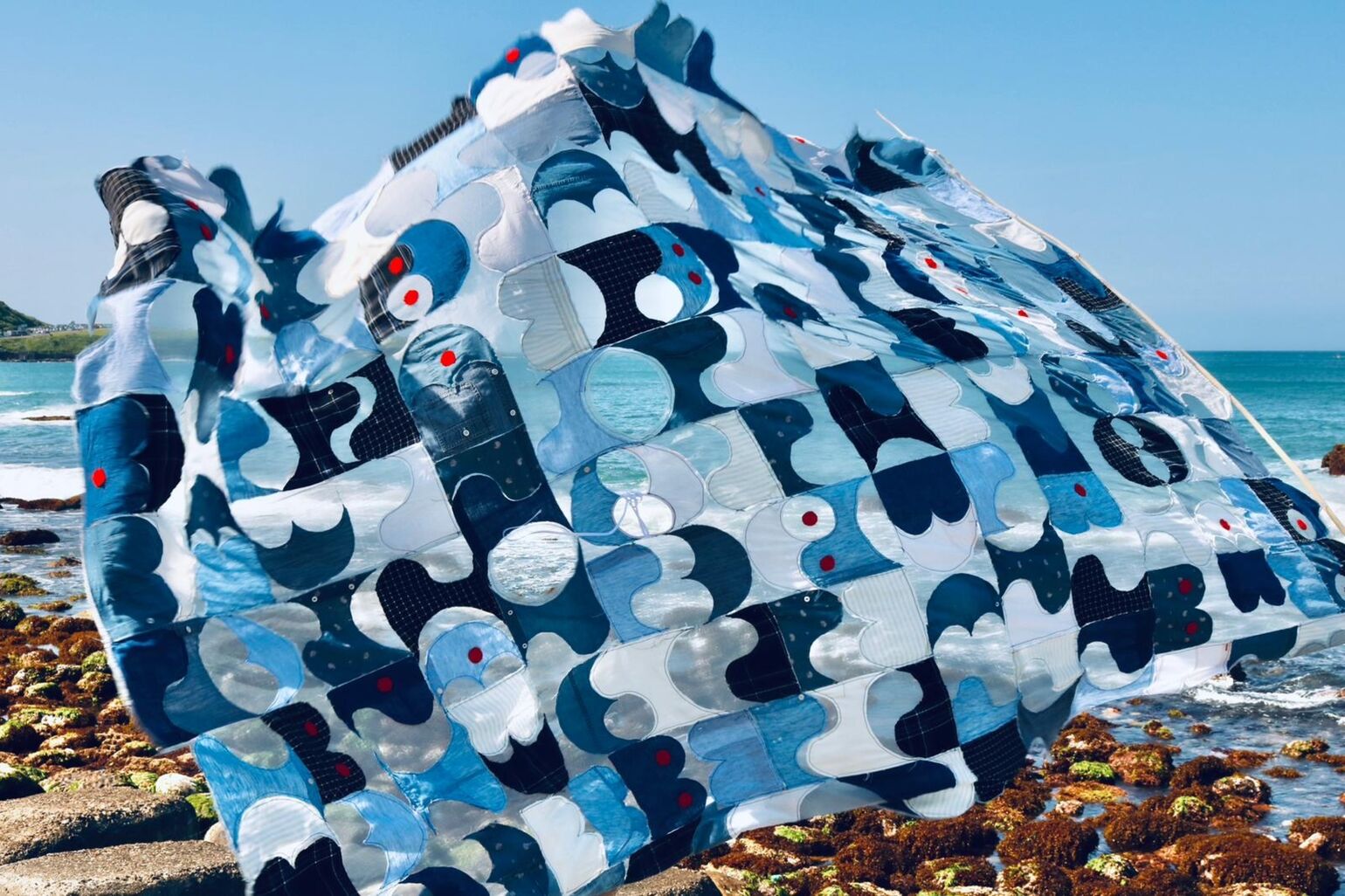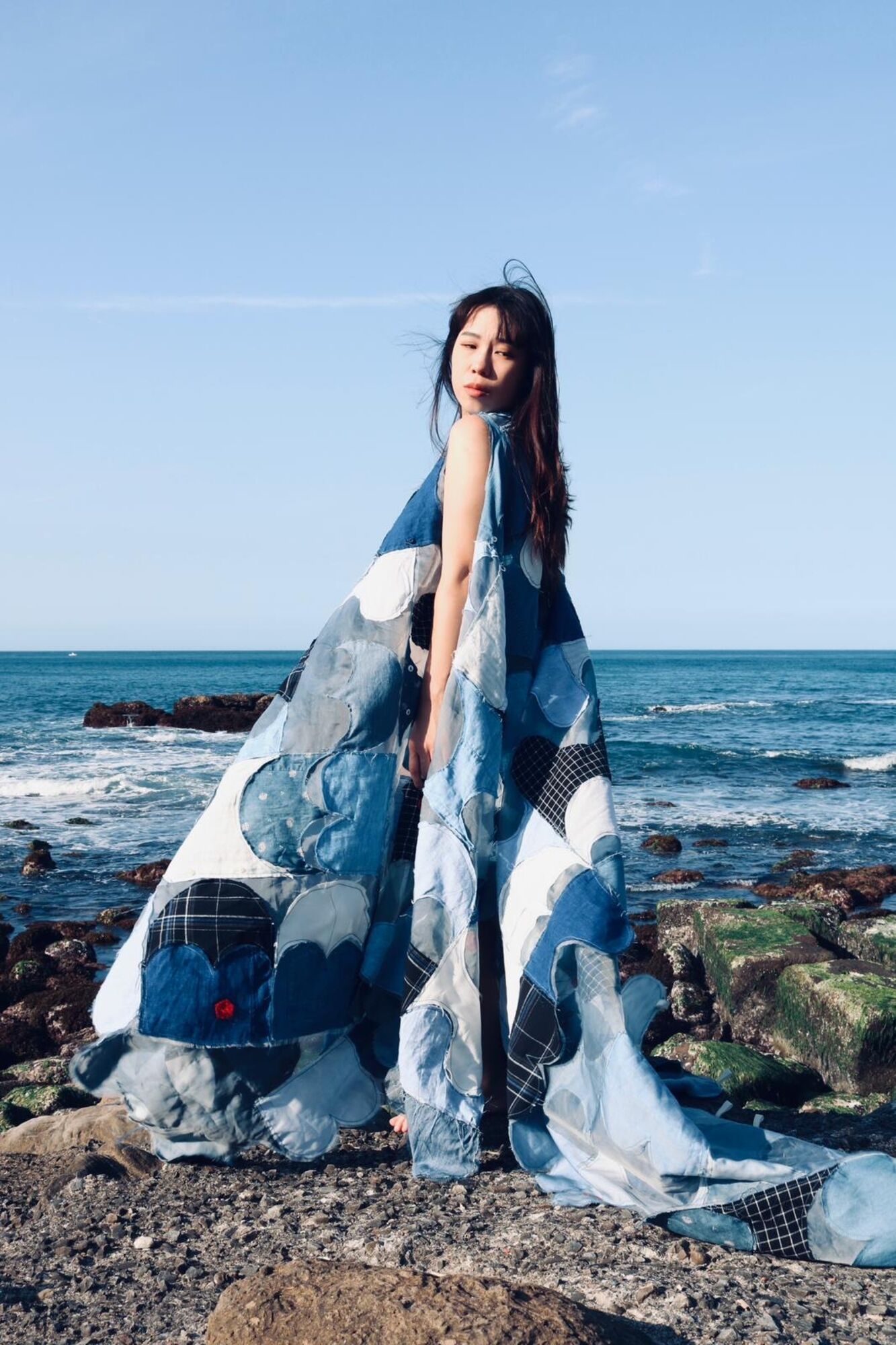 Using second-hand UNIQLO clothing as her medium, Pei-Wen transformed the fabric into these modules, assembling them into a large-scale textile artwork akin to a tangram puzzle. This piece embodies Pei-Wen Jin's vision of oceanic shapes. It can be admired from afar, with hidden marine creatures waiting to be discovered, or worn directly, symbolising immersion in the ocean and integrating bodily movements into the shapes of the sea. This piece was exhibited at an Ocean Rising Fashion Show Hotel Casa del Mar in Santa Monica in May 2024 and will be on display in UNIQLO’s flagship store in Regent Street London throughout August and September 2024.