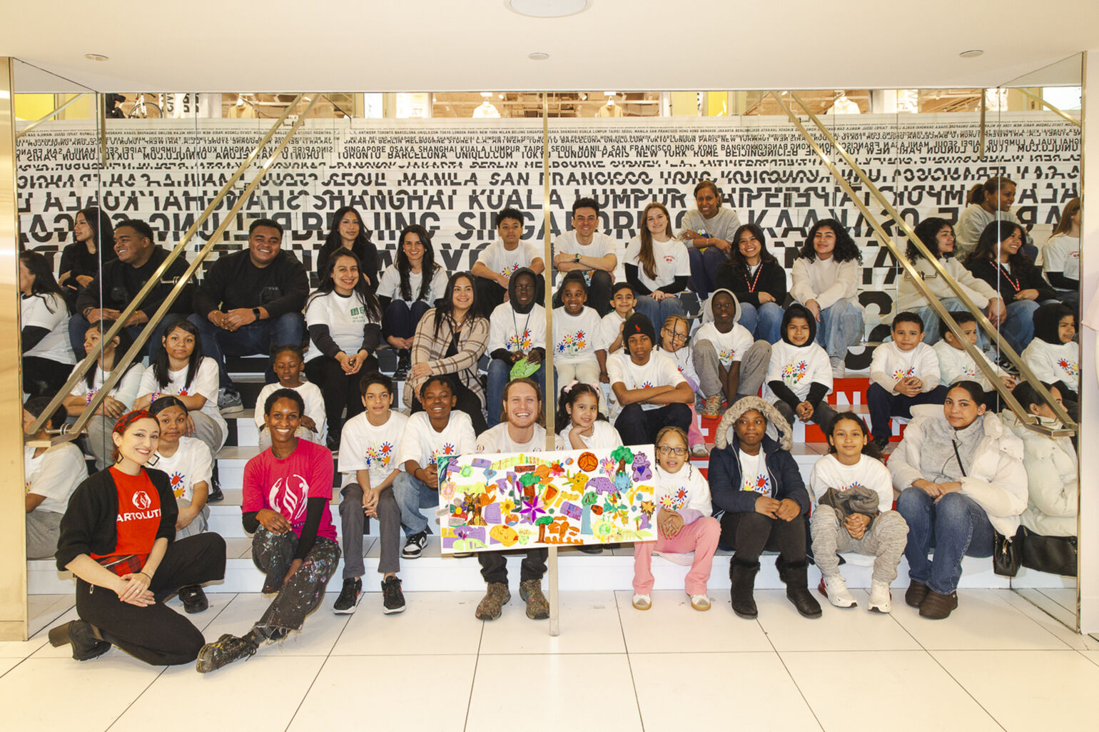 - Jean Shein, Global Director of SustainabilityOn Saturday, March 22, UNIQLO US hosted a collaborative workshop at the 5th Ave flagship location in New York City in partnership with Artolution, an international community-based public arts and education organization, and the New York City Department of Homeless Services. With the support of Artolution and UNIQLO volunteers, 20 children spent the morning making a collaborative art piece inspired by the Picasso design, drawing what “Bouquet of Friendship” means to them.