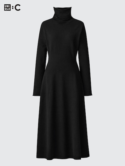 Smooth Souffle Yarn Flare Dress | Turtleneck
