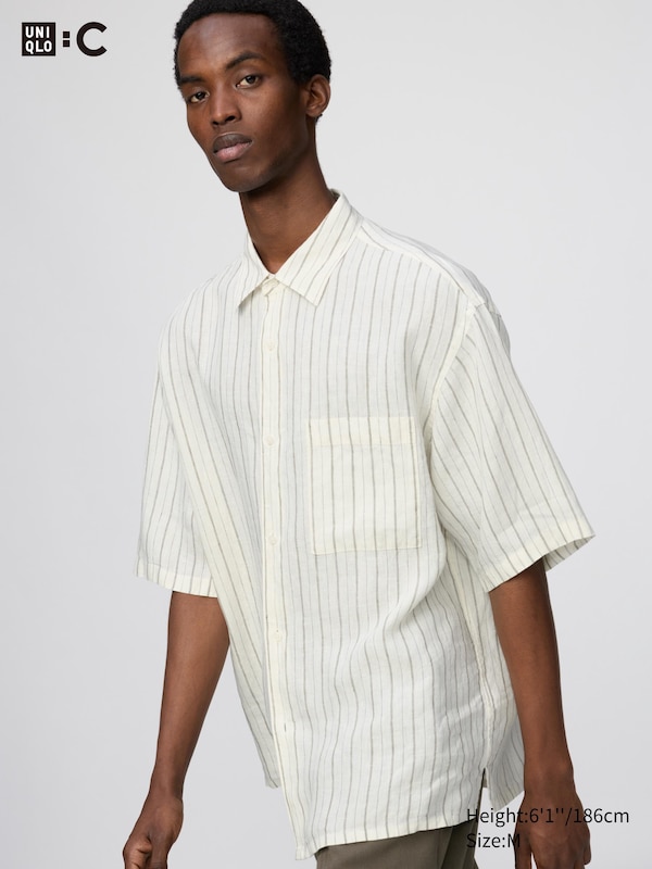 Premium Linen Oversized Shirt | Short Sleeve | Striped