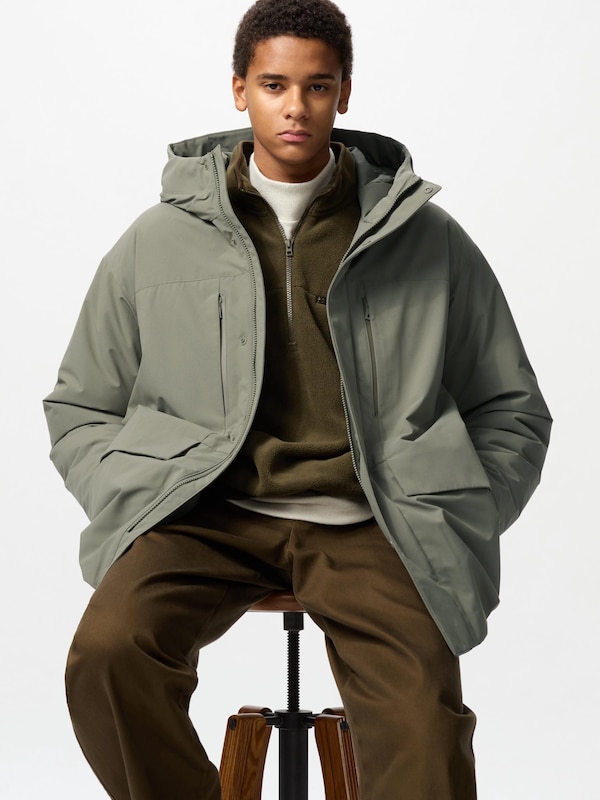 Shell: 100% Polyester ( 50% Uses Recycled Polyesterr Fiber )/ Filling: Front Body: Back Body: From The Waist Up: 90% Down, 10% Waterfowl Feathers/ Mesh: Back Body: From The Waist Down: Sides Of The Item: Sleeve: Hood: 70% Polyester, 30% Rayon/ Liner: Body: 100% Nylon/ Mesh: 100% Polyester/ Pocket Lining: Woven: 100% Nylon/ Pocket Lining: Knit: 100% Polyester