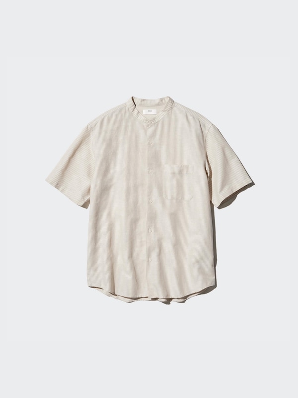 Áo Sơ Mi Vải Cotton Linen | Cổ Trụ | Kẻ Sọc